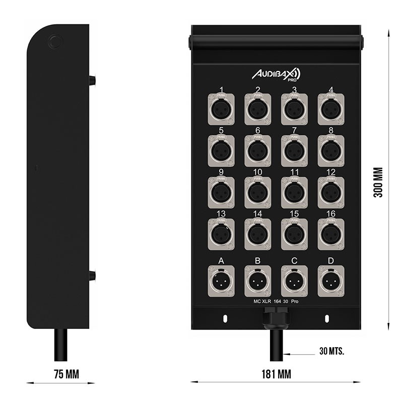 Audibax Pro MC XLR 16430 Pro 30M CajetÃn de Escenario 16 Entradas 4 SalidasR PRO MC XLR 16430 PRO 30M