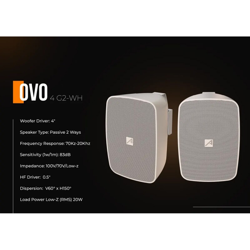 Audibax Ovo 4 G2 Blanco Pareja de Altavoces Pasivos Pared 4 Pulgadas 100v / 8 oh
