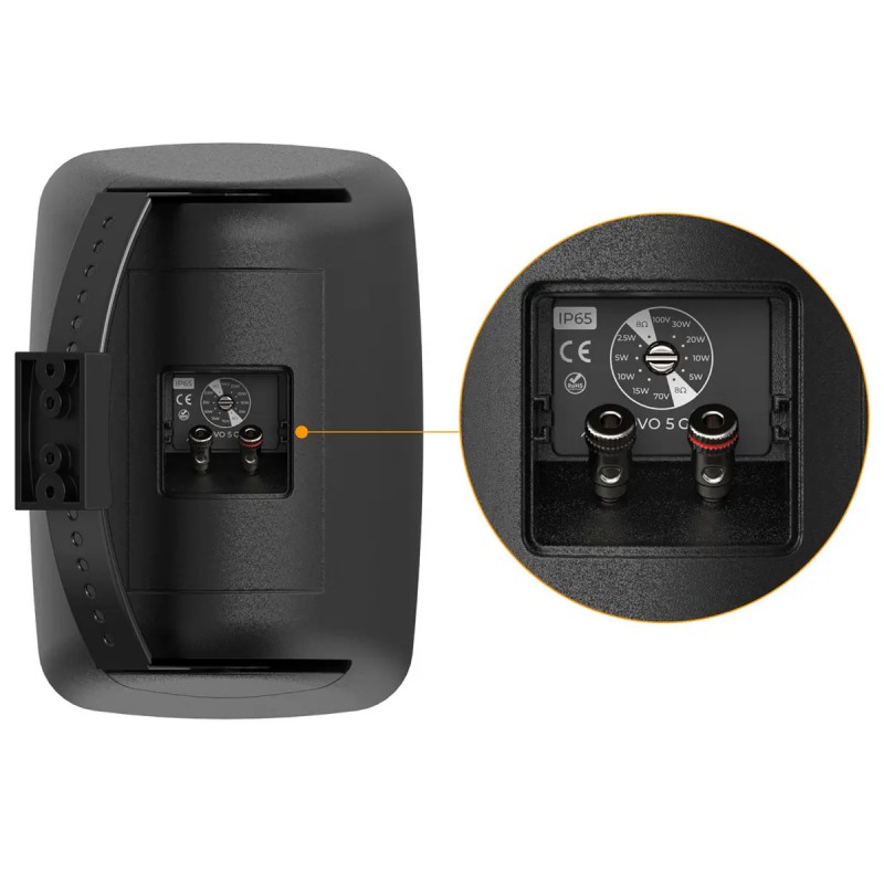 Audibax OVO 6 G2 Negro Pareja de Altavoces Pasivos Pared 6 Pulgadas 100v / 8 ohm IP65Woofer: : 6,5″ Tipo de altavoz: Pasivo de 2 vías Respuesta en frecuencia: 50 KHz – 20 KHz Sensibilidad (1 W / 1 m): 87 dB Impedancia: 100 V / 70 V / Baja impedancia (Low-Z) Tweeter 1″ Dispersión: Vertical 60° x Horizontal 150°