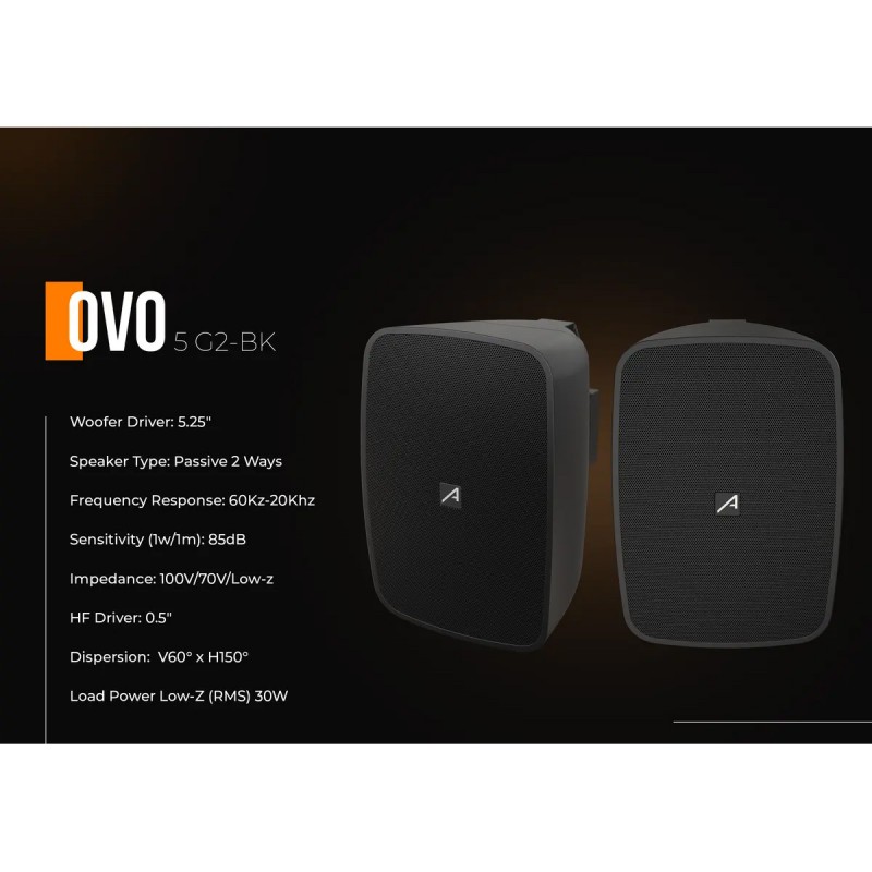 Audibax Ovo 5 G2 Negro Pareja de Altavoces Pasivos Pared 5 Pulgadas 100v / 8 ohm