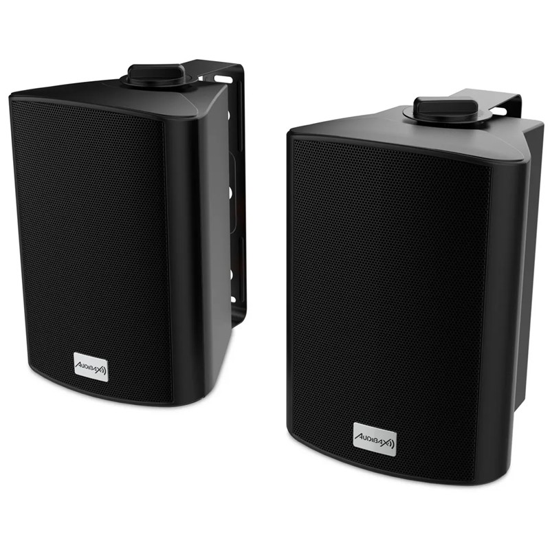 Audibax PR-42 Black Altavoces HiFi y Sonorización 4" con SoportesAltavoces estantería o pared con soportes incluidos Conjunto de Altavoces Stereo color Negro 75W músicales de Potencia Pareja de altavoces estereo 2 vias de alta potencia apropiado para aplicaciones de Alta Fidelidad y sonido envolvente e instalaciones de sonorización. Sistema bajo reflex...