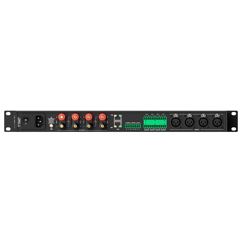 Amplificador de Matriz 2 x 300W Control DSP + Ethernet. Audibax Pro MA4500TAmplificador de 2 canales x 300W con DSP La elegante interfaz del software garantiza simplicidad, mientras que diversas opciones de conexión se adaptan a entornos variados. Mejore su experiencia de audio con MA DSP, donde la potencia se une a la precisión.