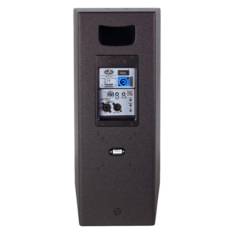 ARTEC-510A es un sistema autoamplificado de 2 vías, diseñado para aplicaciones que requieren una mayor potencia y cobertura en espacios medianos o grandes. Equipado con un transductor de 10” para las medias y bajas frecuencias y un motor de compresión M-60N con diafragma de titanio y un imán de neodimio, el sistema proporciona una respuesta precisa y clara en todo el rango de frecuencias, desde 45 Hz hasta 20 kHz, con una presión sonora máxima de 128 dB SPL.