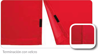 Terminación con velcroEl velcro se utiliza para unir temporalmente dos o más textiles juntos en el ancho, ya sea para crear un muro de telones o simplemente conectar dos juntos por sus bordes. También se puede colocar en todo el perímetro de la tela.