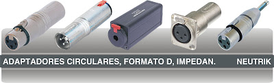 Conectores Jack Y RCANeutrik ofrece una amplia gama de jacks, tanto aéreos como de chasis ¼”, asi como minijacks (3,5mm), MIL/B-gauge y bantam de 4,4mm. En la gama de chasis podemos encontrar un “Slim” de ¼ para montaje PCB, que es casi gama “Heavy Duty” de la Serie “M” combina una gran cantidad de opciones: tres diseños de roscas y cuatro tipos de contactos, que incluyen 3 para PCB y una con copas de soldadura. Destacar también las hembras aéreas y de chasis con pestaña de retención, ya conocida en los XLR. Todos ellos construidos con los mejores termoplásticos y disponibles en todas sus versiones para poder abarcar todo tipo de aplicaciones, tanto industriales como de audio.Serie PX y PRX: NP2X, NP3X-B, NP3X+PRX-5, NP3RX-BSerie silentPLUG: NP2X-AU-SILENT, NP2RX-AU-SILENTSerie cristalCON: NP2X-B-CRISTALSerie C: NP2C+BSP-3Serie MIL y B-Gauge: NP3TB-R, NP3CM-BSerie Bantam 4,4mm: NP3TT-1-B, NP3TT-2Serie Minijack: NTP3RCSerie Hembra aérea ¼” con bloqueo: NJ3FC6, NJ3FC6-BAGSerie Hembra chasis ¼” con bloqueo: NJ3FP6C, NJ3FPC-BAGSerie Hembra chasis PCB: NJ*FD-V, NJ6TB-VSerie Hembra ¼” M: NMJ4HHD2, NMJ2HC-S, NMJ6HFD2, NRJ4HH-1Serie RCA Profi: NF2C-B2, NF2D-4, NF2D-B-6