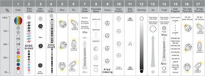 - Gobos fijos: rueda con 14 gobos fijos no rotantes e intercambiables.