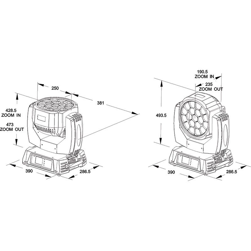 Cabeza móvil Hibrida IP65 LED 450W | Briteq BTI-BLIZZARD BSW2Funcionamiento silencioso: perfecto para uso tanto en interiores como en exteriores Fuente de luz LED blanco de 450W Mezcla de colores CMY, incluidos varios ajustes preestablecidos de color Zoom electrónico de 3°-30° con enfoque motorizado Enfoque automático