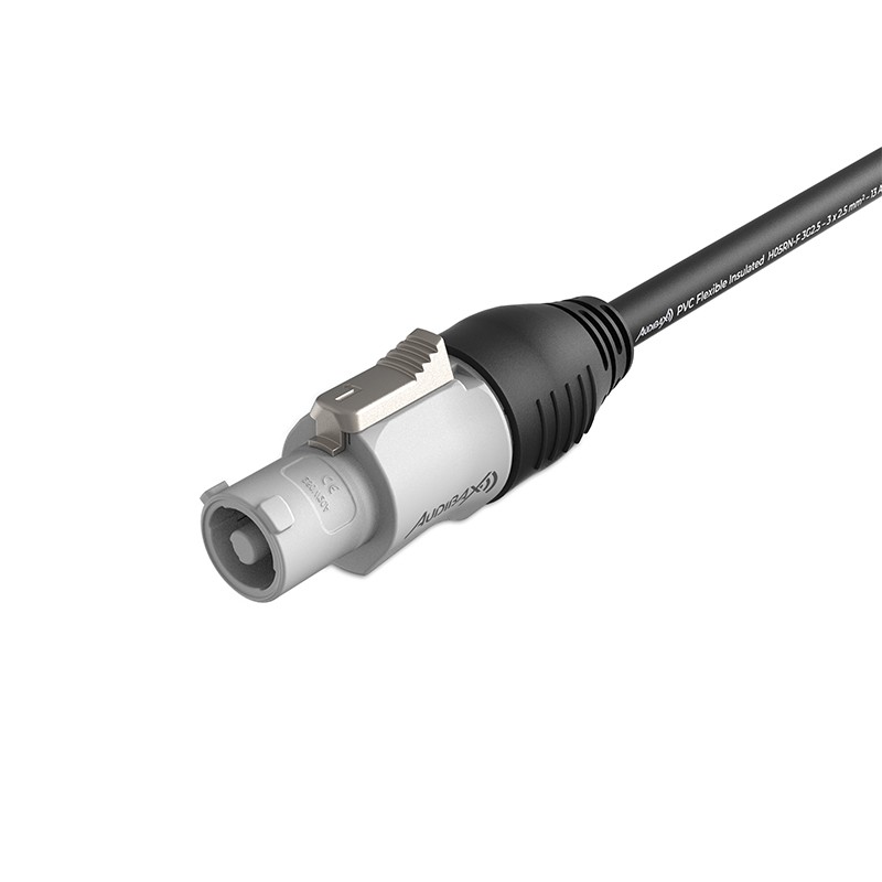 Cable alargador powerCON / powerCON de 3 m | AUDIBAX PWC300-25Cubierta exterior flexible Conductores delgados y densos de 13 AWG (2,5 mm²) Adecuado para uso extremo en interiores y exteriores. Cable H05RN-F de 2,5 mm² con revestimiento resistente Corriente nominal de 20 A Longitud: 3 m