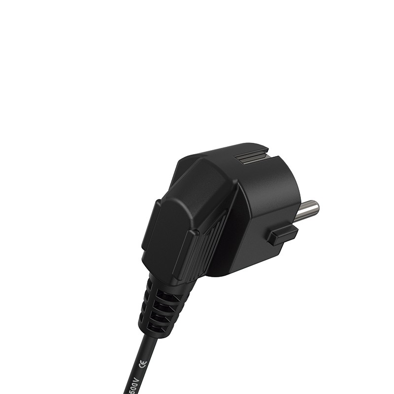 Fabricado con cable H05VV-F (1,5 mm²) y enchufe EURO-C13, soporta hasta 3680 W y un voltaje de 220–250 V.