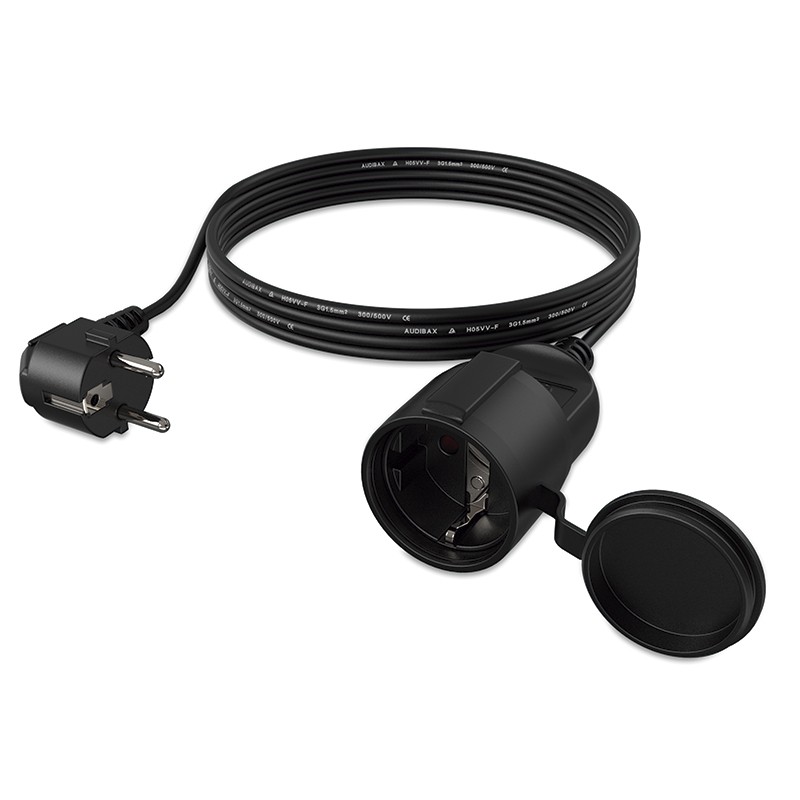 Audibax PCE500-15 Power Extension Cord es una extensión de cable de 5 m diseñado para ampliar la conexión de tus dispositivos eléctricos y regletas de manera segura.