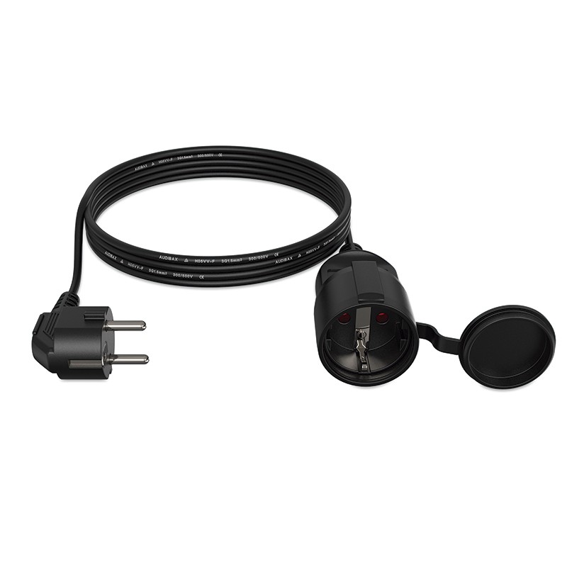 Alargador de corriente Schuco-Schuco de 3 m, con cable H07RN de color negro de 3 x 2,5mm2Siempre es necesario tener alargadores a mano Alargo de corriente con cable schuco macho y schuco hembra de 3 m Cable H07RN color negro, sección 3 x 2,5mm2