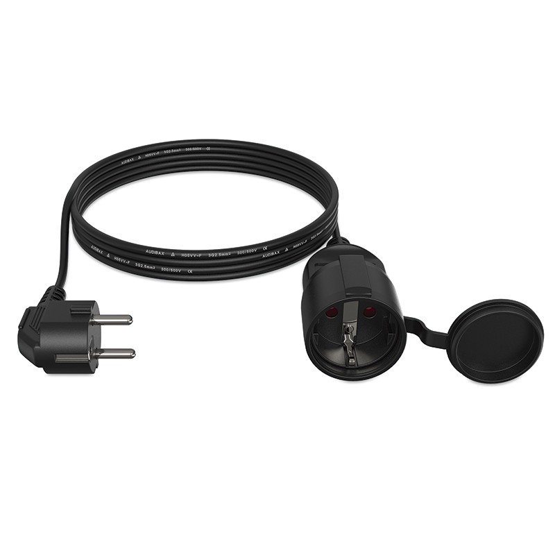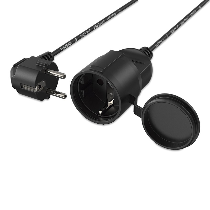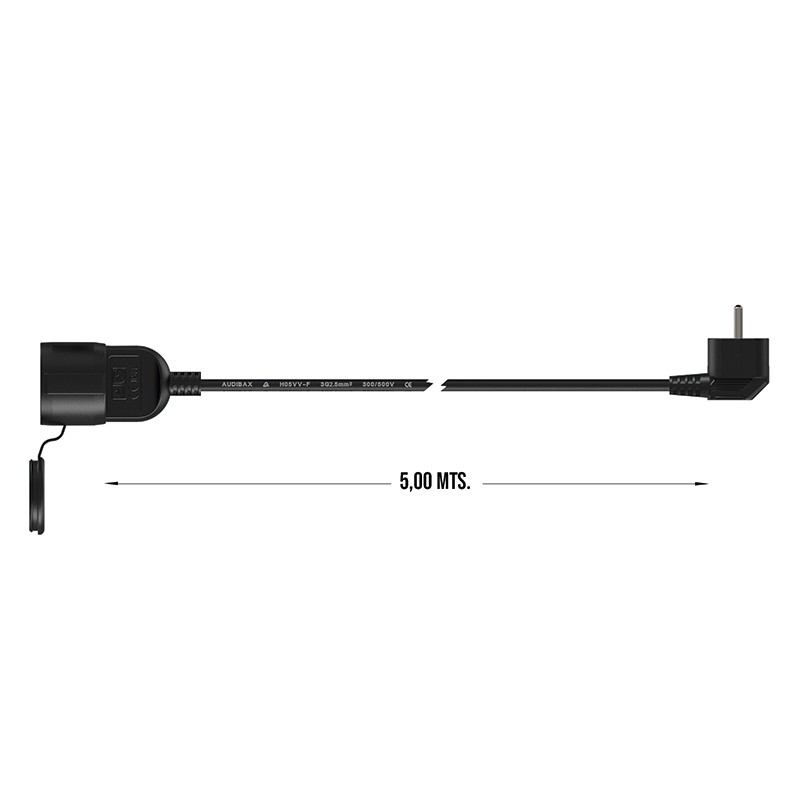 Audibax PCE500-25 Power Extension Cord es un cable de extensión de 5 m diseñado para ampliar la conexión de tus dispositivos eléctricos y regletas de manera segura y fiable.