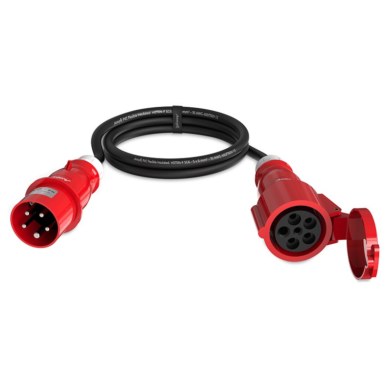 Cable alargador CEE 32A 5 polos macho a CEE 32A 5 polos hembra de 10 m. |AUDIBAX CEE1000-60-5PCables trifásicos de 32A y 450/750V con AWG 10 fabricados con cable H07RN-F y equipados con tomas de corriente CEE 5 pines Cable H07RN-F 5G6 de 6 mm² con revestimiento de goma resistente 32A Macho a 32A hembra Longitud: 10 m