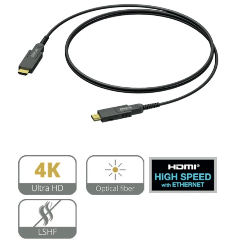 Cable HDMI A macho - HDMI A macho - Óptico activo - HighFlex. Procab CL210A/20Capaz de transmitir resoluciones hasta ultra HD 4K 2160p (3840 x 2160) 4: 4: 4 a 60 Hz con un ancho de banda de 18 Gbps Tecnología de fibra óptica de fibra OM3 Con HDCP 2.2, CEC, HDR y ARC, el CLV210A cumple o supera los estándares HDMI existentes. Diseño de conector tipo...