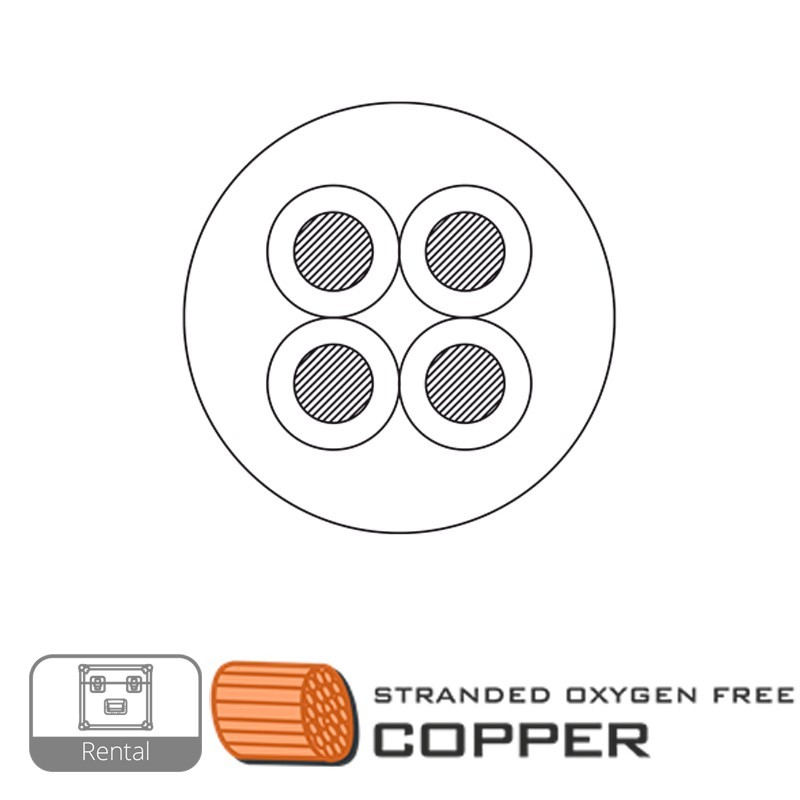 Cable de altavoz 4 x 2.5 mm² - 13 AWGRecomendado para rental (compañías de alquiler), su flexibilidad es una de sus principales características Cubierta exterior Highflex sólida y flexible Conductores trenzados de 2,5 mm² (13 AWG) delgados y densos 4 conductores para conexión de altavoces de 2 canales Cables diseñados para empresas de alquiler de...