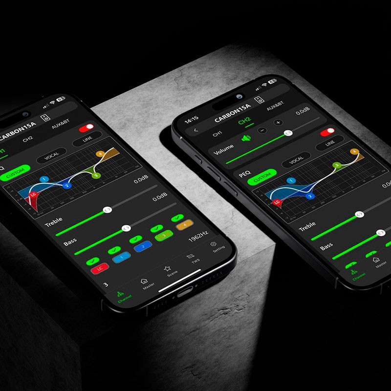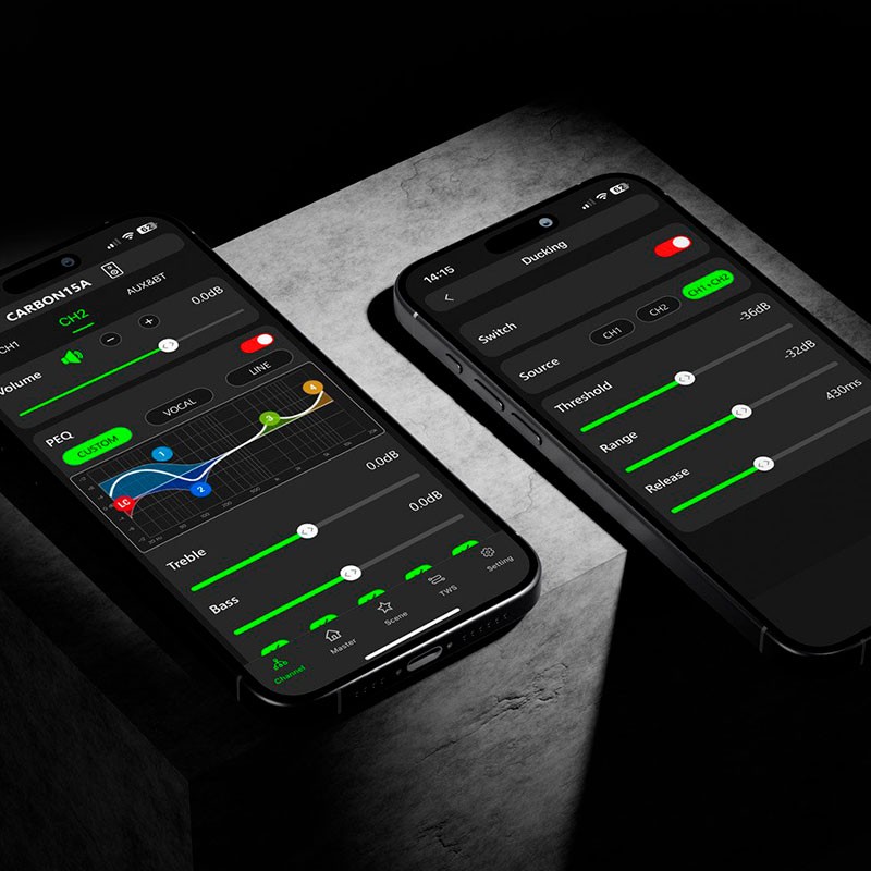 Subwoofer activo de 18″ – 1000 W RMS con DSP+TWS+App | Audiophony CARBON18ASubAltavoz activo (Con amplificación) Potencia 1000W RMS SPL máx. (@1 m): 135 dB Función: Aplicación para Android, DSP, aplicación para iOS