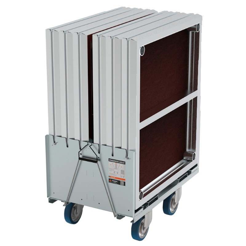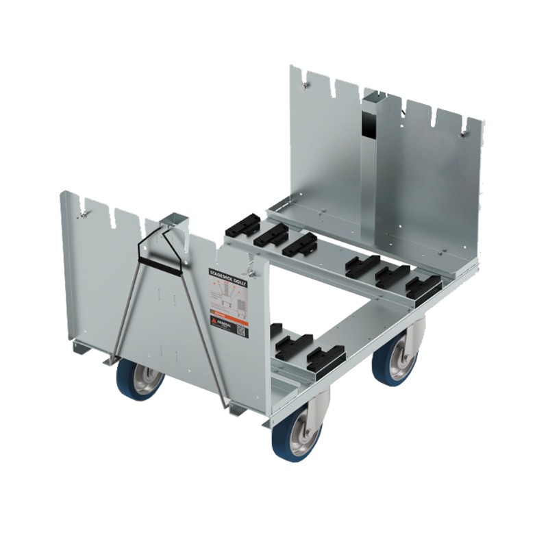 Carro para transporte de tablero de tarimas de 2 mRentable y rápido, el carro permite transportar eficientemente hasta seis tarimas a la vez Con un ancho de 59 cm, puede colocar cuatro carros uno junto al otro en un camión Incluye 4 ruedas giratorias con freno para una carga útil de 220 kg