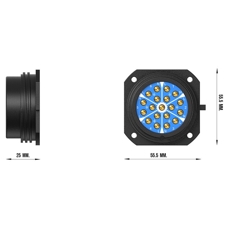 Conector Socapex 19 Pin macho chasis | SCP-MC-19P Audibax100% compatible con la marca Socapex 19 Pin de 16A Conexión mediante soldadura Multiples aplicaciones: iluminación, audio, instalaciones, industria
