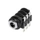 Conector Jack hembra stero chasis cuerpo Negro NJ3FP6P-BAGConector jack con bloqueo de 1/4", carcasa de tamaño D, carcasa de plástico negro y contactos plateados La versión de montaje en panel de conector jack de 3 polos proporciona conexiones estables y seguras donde pueden ocurrir desconexiones accidentales o golpes y vibraciones