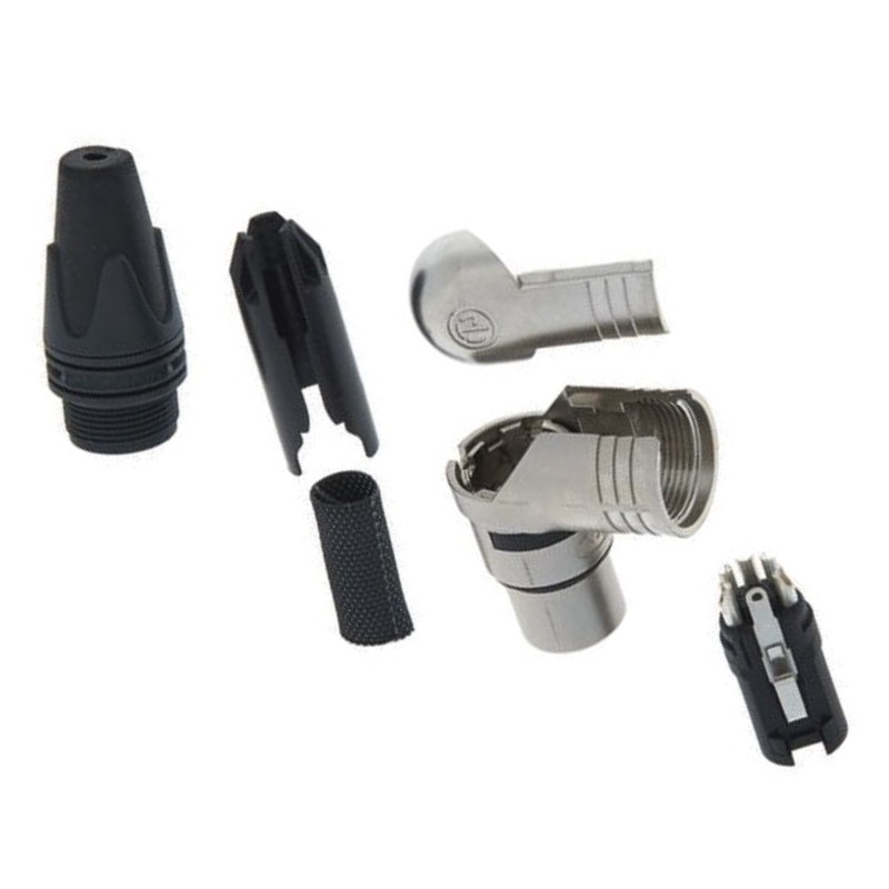 Conector XLR hembra aérea de 5 PIN cuerpo Negro contactos plata, acodado 90ºConector de cable XLR macho de ángulo recto de 3 polos Utilizado principalmente en instalaciones AV e industriales y en instalaciones de señal DMX