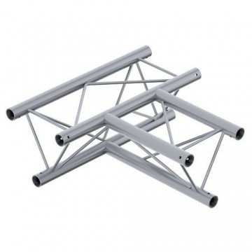 DECO22T-AG01 Tramo truss de aluminio sección triangular de 220 mm, 2 direcciones 50 cm 90ºFabricación según la norma DIN ISO 4113 y las normas TUV. Aleación de aluminio (EN AW 6082 T6) de 50 mm de diámetro. Se suministra con un kit de piezas cónicas de conexión.