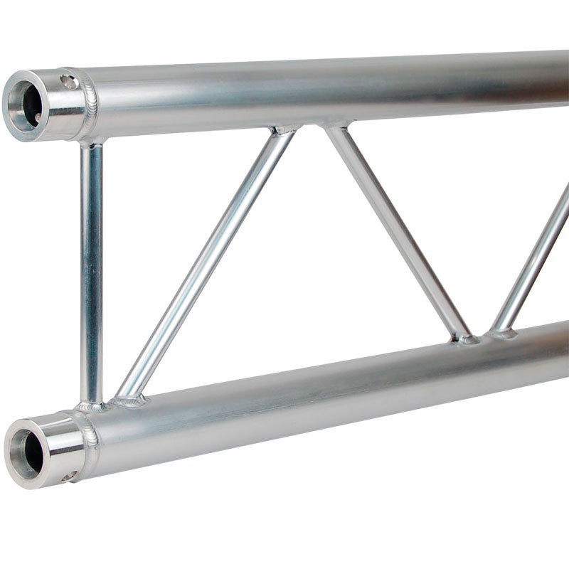 Truss de aluminio sección paralela de 290 mm. Longitud 100 cm. DUO29-100 ContestageFabricación según la norma DIN ISO 4113 y las normas TUV. Aleación de aluminio (EN AW 6082 T6) de 50 mm de diámetro y 2 mm de espesor. Soportar cargas más grandes se monta con accesorios cónicos.Se suministra con un kit de piezas cónicas de conexión.