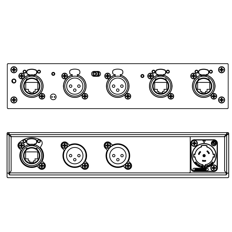 Panel de conexion PATCH-M88 | DAS AudioPatch Panel, 8IN x 8OUT (audio analógico), 2x EtherCon para conectividad ALMA y DANTE, panel de montaje en rack 1U de 19″, conectores balanceados Neutrik.