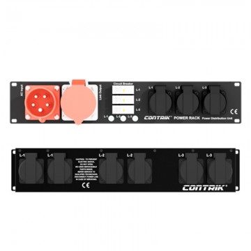 Power Rack Xtreme CPR16-C2-T6F1-CB Contrik 1 conector CEE16A de entrada + 1 CEE16 para cadena, 1 Schuko 16A para salida + 6 powerCON TRUE 1 Protección del circuito: 1x RCCB (3 polos + N), 3x MCB (1 polo). Atrás: SALIDA 6 powerCON TRUE 1 El Power Rack Xtreme de Contrik es una solución de distribución potente y altamente confiable para instalación en Rack...