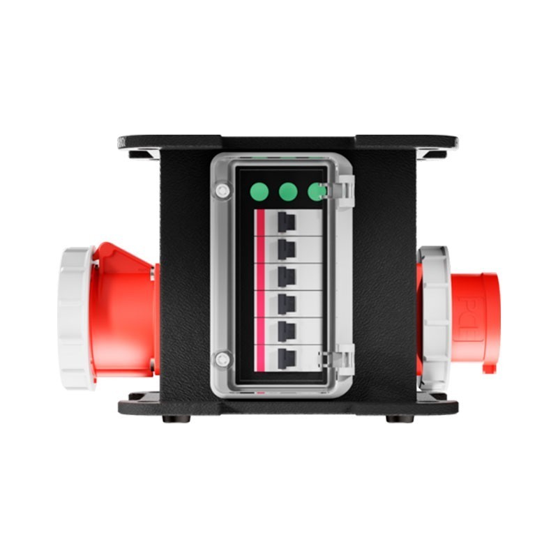 Power Rack Xtreme CPR32-C2-T6F3-CB Contrik 1 conector CEE32A de entrada + 1 CEE32A para cadena, 3 Schuko 16A para salida + 6 powerCON TRUE 1 TOP Protección del circuito: 1x RCCB (3 polos + N), 3x MCB (1 polo). Atrás: SALIDA 6x Schuko El Power Rack Xtreme de Contrik es una solución de distribución potente y altamente confiable para instalación en Rack de...