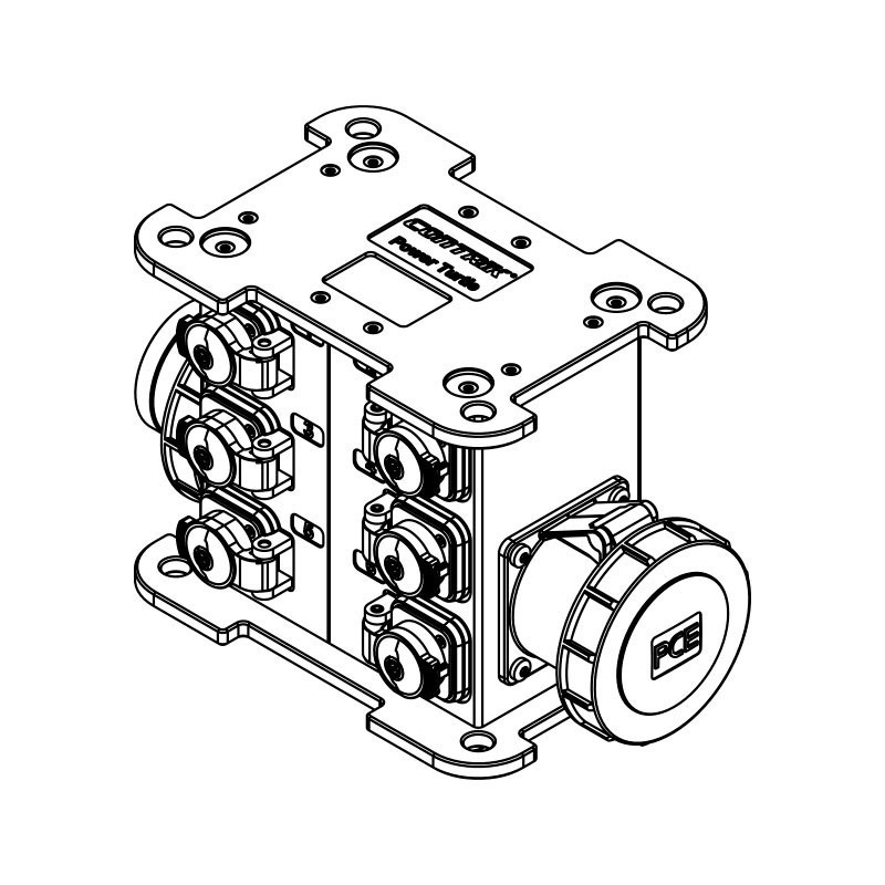 Cajetín IP65 1 entrada Socapex macho 19 pin 6 salidas Powercon TRUE1 TOPContrik Power Turtle Xtreme Outdoor CPTM-S1-T6 IP65 Caja de distribución compactas extremadamente resistentes que permiten una reducción significativa del volumen, el esfuerzo y el costo del cableado debido a la entrada multinúcleo Es ideal para uso en exteriores y aplicaciones...