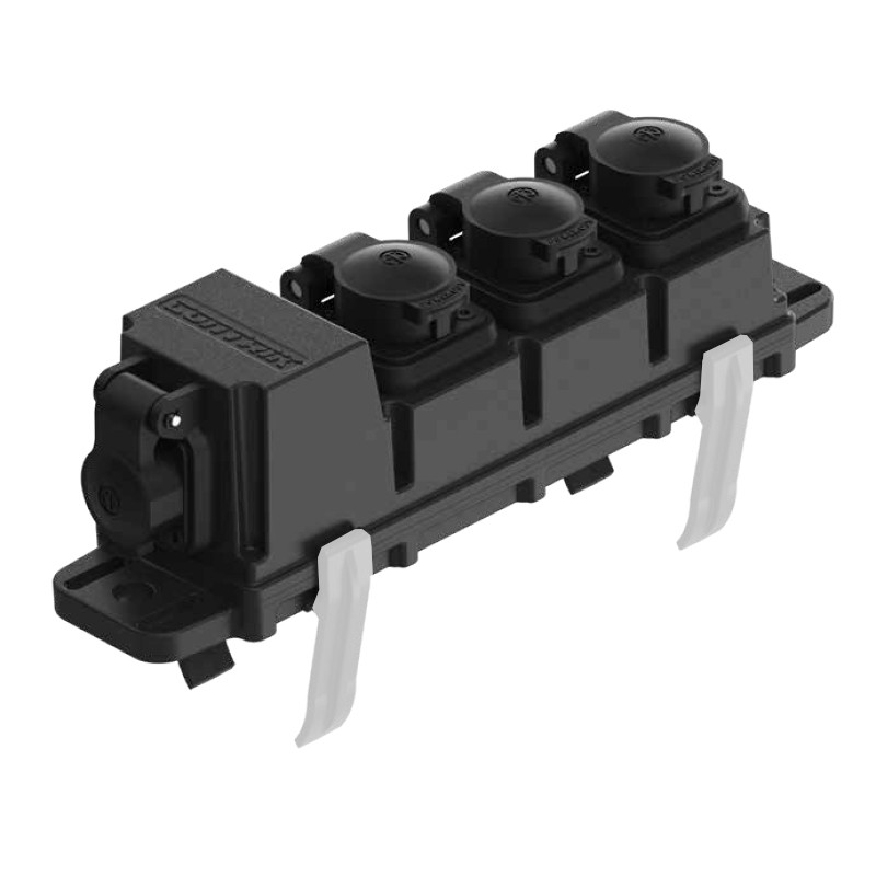 Cajetín Power Bar Xtreme para exteriores. 1 entrada powerCON TRUE1 y 3 salidas powerCON TRUE1 TOP | Contrik