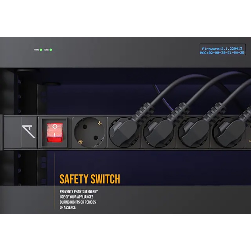 Base 8 Schuko formato Rack 19" 1U con Interruptor On/Off | Audibax PSR8-PwCPotencia maxima 3.680 W. Longitud del cable: 1,8 m Entrada de alimentación mediante conector powerCON 8 enchufes tipo Schuko de 16A. Interruptor On/Off en el frente Cuerpo de aluminio Altura de rack 1U. Cable de alimentación H05VVF de 3x1,5mm² y de 1,8 metros de longitud, con...