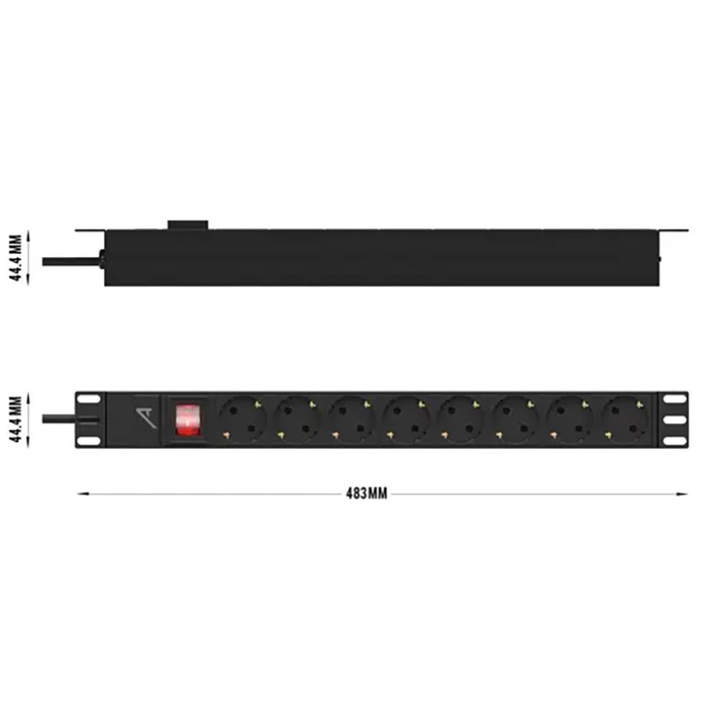 Regleta 8 Tomas Schuko formato Rack 19" 1U | Audibax PSR8-SBPotencia maxima 3.680 W. Longitud del cable: 1,8 m 8 enchufes tipo Schuco de 16A. Cuerpo de aluminio. Altura de rack 1U. Cable de alimentación H05VVF de 3x1,5mm² y de 1,8 metros de longitud, con conector schuco de 16A Cumple la normativa 89/366/EEC - 73/23/ECC - 93/68/EEC con estándares norma...