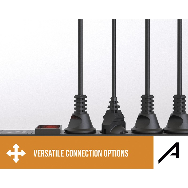 Regleta 8 Tomas Schuko + 2 Tomas USB formato Rack 19" 1U con Interruptor On/Off | Audibax PSR8-SB-USBPotencia maxima 3.680 W. Longitud del cable: 1,8 m 8 enchufes tipo Schuco de 16A. Interruptor On/Off en el frente USB en el frente Cuerpo de aluminio Altura de rack 1U. Cable de alimentación H05VVF de 3x1,5mm² y de 1,8 metros de longitud, con conector...