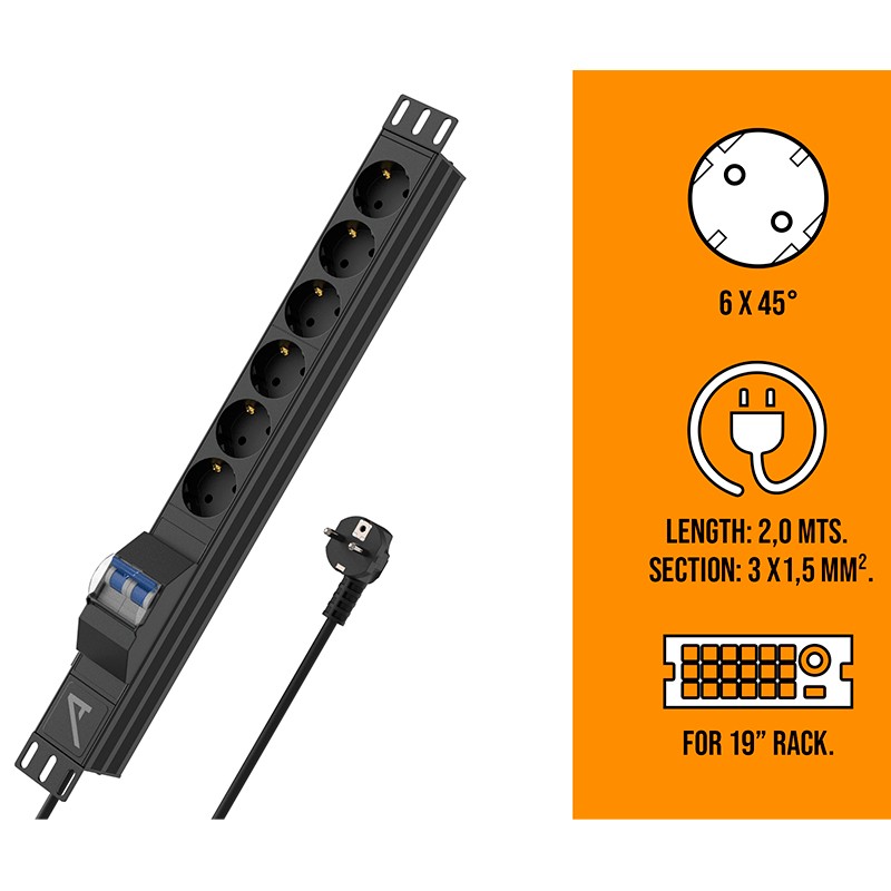 AUDIBAX PSR6-M-200 Base formato rack con 6 tomas schucko y magnetotermico