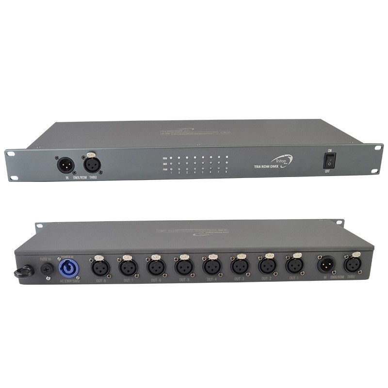 TRITON BLUE DISTRIBUIDOR Y AMPLIFICADOR DMX FORMATO RACK 19" - 1UEl Splitter SATURN 4R Triton Blue es particularmente demandado en aplicaciones e instalaciones DMX512 que cubren largas distancias, donde interferencias y las frecuencias no deseadas deben ser evitadas. 10 SALIDAS PANEL TRASERO / 2 ENTRADAS EN PANEL FRONTAL Aplicaciones: Compañías De...