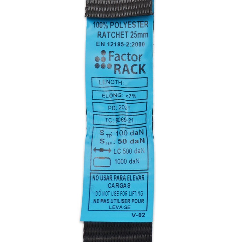 | Material | Cincha de poliéster. Tensor de aleación de acero con acabado anticorrosivo (zincado) |