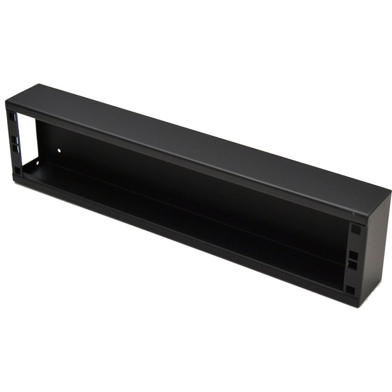 Cajetín metálico formato rack de 19" con 1U de alturaPerfecto para instalaciones en teatro, estudios de TV, colegios, etc Permite colocar en el frontal del cajetín paneles rack ciegos, de XLR, Speakon, Powercon para pach de iluminación y sonido, etc.