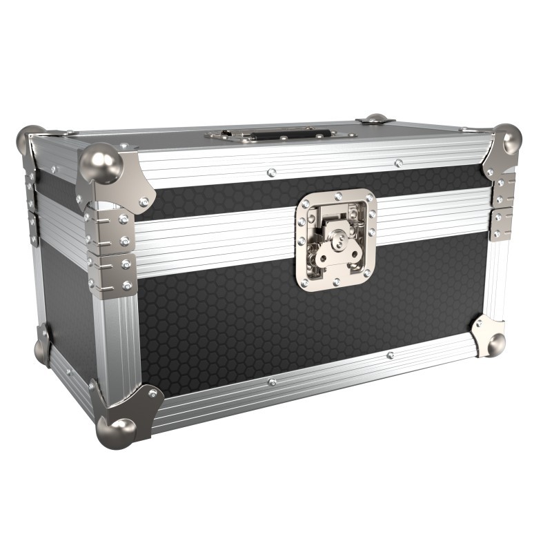 Flightcase para 2 unidades de Python 100 Fabricado en madera de 9 mm Tapa superior con bisagras con 4 bases encajadas para ruedas que facilitan apilado de varios Angulo de aluminio de 35 mm con goma protectora en las esquinas para mayor protección 4 așas empotradas (dos en cada lateral del flighcase) 2 cierres de mariposa 4 Ruedas (2 con freno y 2 sin...