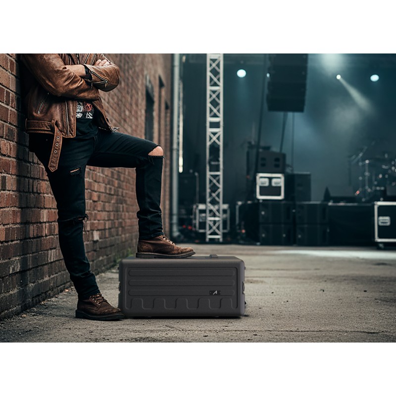 Audibax FA51-8U redefine la forma de proteger y transportar equipos de audio profesional.Construcción en PE de Alta Resistencia Diseño Rack de 8U Protección Reforzada Seguridad Avanzada Con Cierres Butterfly