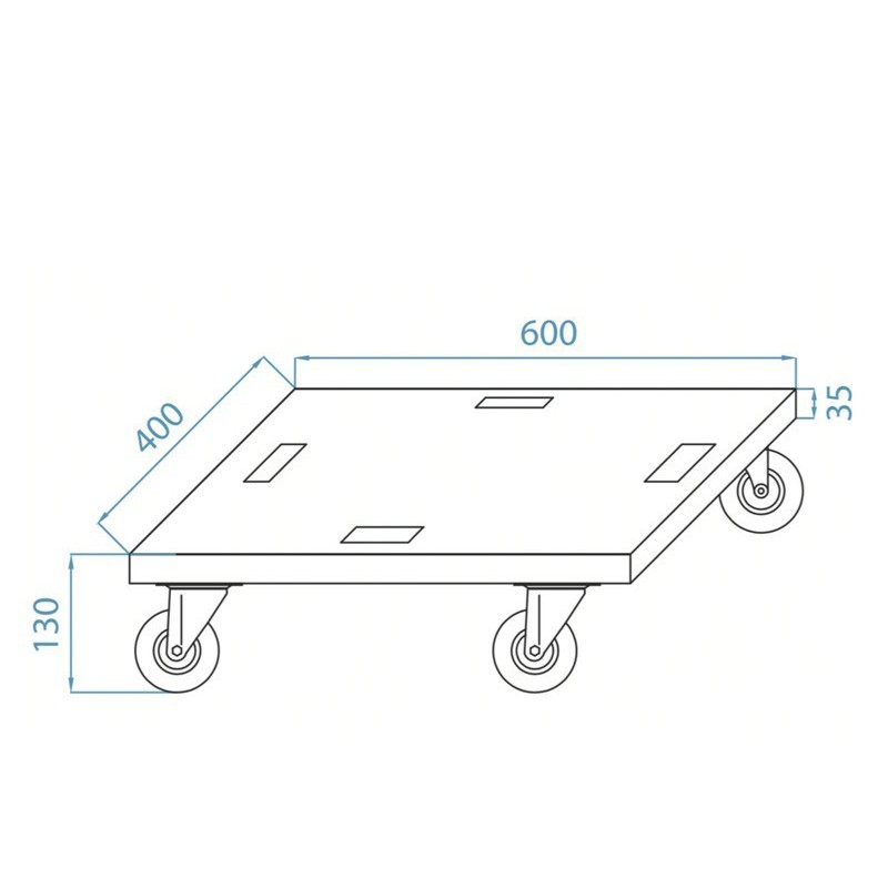 Flightcase para 12 proyectores B60 | Triton BlueFunción de carga simultánea Peso ligero con acabado exterior en color negro con madera PROBUCKER tipo nido de abeja en color negro Medidas Ancho: 767 mm Profundo: 564 mm Alto: 416 mm (con ruedas) Peso aproximado (vació): 28 kg 4 Ruedas (2 con freno y 2 sin freno)