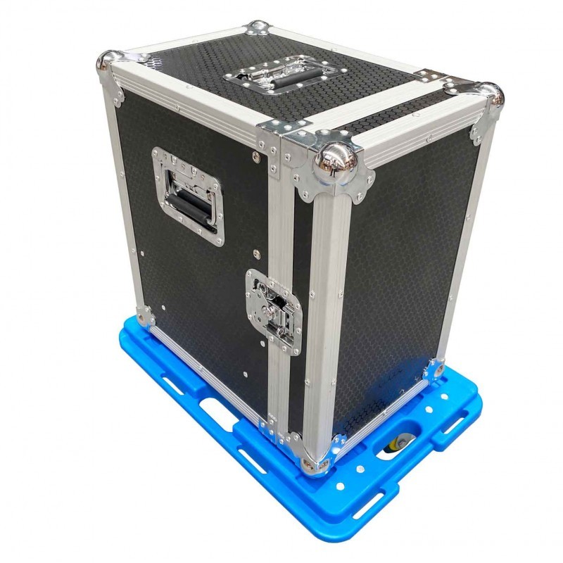 Fabricado en madera de 9 mm con cubierta exterior PROBUCKLER Angulo de aluminio de 35 mm 4 așas empotradas (dos en cada lateral del flighcase) 2 cierres de mariposa 4 Ruedas (2 con freno y 2 sin freno)