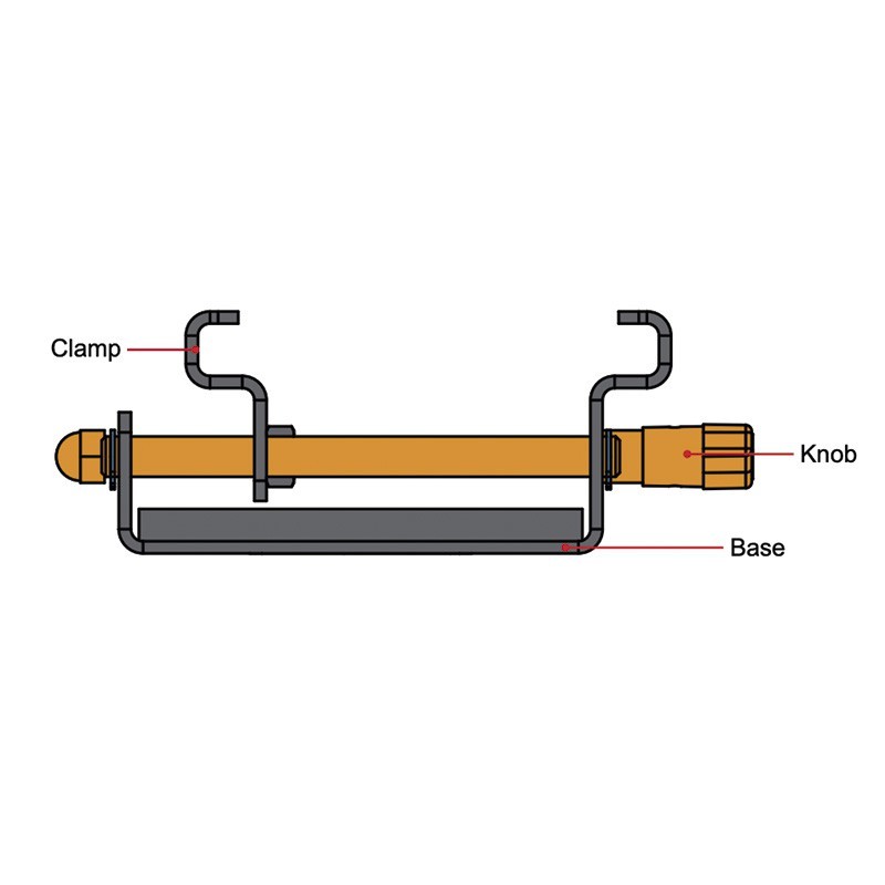 Abrazadera ajustable diseñada específicamente para montaje de carpas.