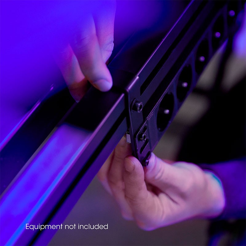 Soporte de iluminación con base cuadrada de acero y opción de montaje para pesos descentrados, Gravity LS 431 BBase de acero grande y robusta para un equilibrio firme Base con tres roscas interiores M20 para el montaje excéntrico de pesos Tubo de extensión de 35 mm con rosca interior M10 Altura máxima: 2,4 m