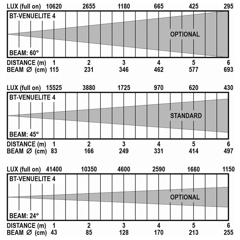| Apertura haz | 45º opcionalmente se pueden instalar aperturas de 24º ó 60º |