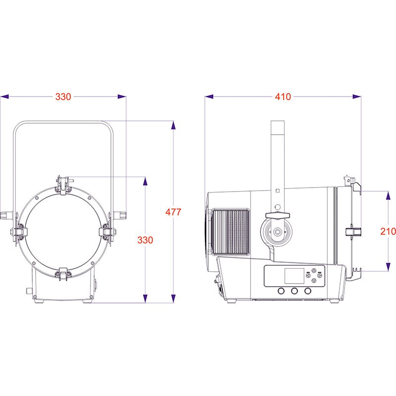 Proyector Fresnel LED COB 200 para TV, cine y teatro con temperatura de color desde 2800k a 6000KPotente Fresnel de teatro LED de 200W con CCT ajustable . LED COB doble (100W 2800K + 100W 6000K) para blanco sintonizable con CCT que va desde 2800K a 6000K. El proyector versátil perfecto para trabajos en TV, teatro, alquiler, stands de exposición...