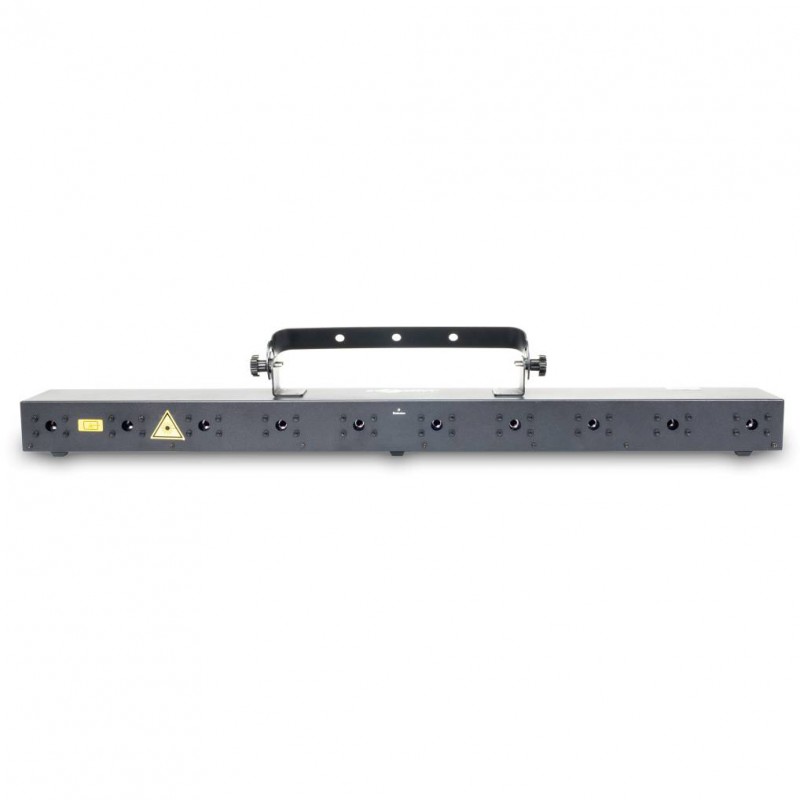 Un sistema láser con 10 puntos de luz, con salidas de un solo rayo azul y control DMX. Adecuado para eventos de tamaño medio a grande y excelente para crear efectos escénicos.