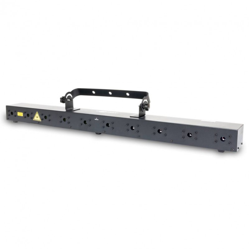 Laserworld BeamBar 10RGB El Laserworld BeamBar 10RGB es un sistema láser de luz blanca con diez aperturas individuales.Potencia de salida total garantizada de 2500 mW. 10 módulos de diodos rojo, verde y azul. Fácil alineación del láser mediante la placa frontal. Control de brillo: modulación analógica. Programable por DMX. Modos automático, autónomo y...