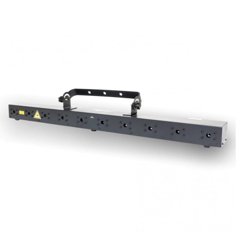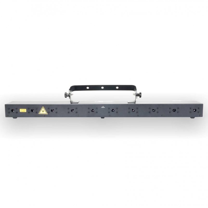 Laserworld BeamBar 10RGB El Laserworld BeamBar 10RGB es un sistema láser de luz blanca con diez aperturas individuales.Potencia de salida total garantizada de 2500 mW. 10 módulos de diodos rojo, verde y azul. Fácil alineación del láser mediante la placa frontal. Control de brillo: modulación analógica. Programable por DMX. Modos automático, autónomo y...