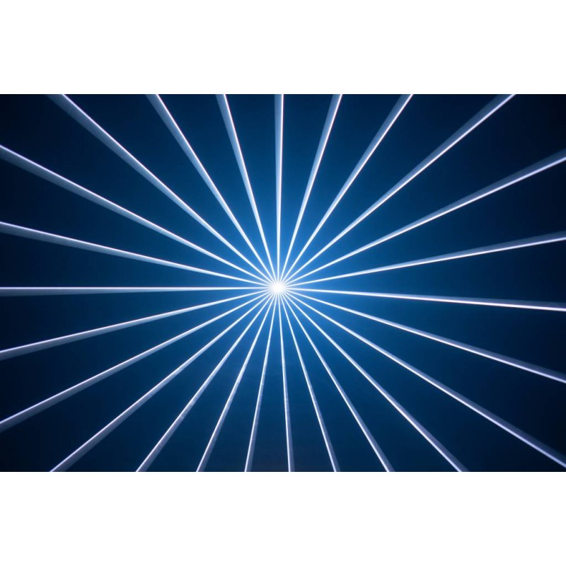Un potente láser de diodo puro modulado analógico semiprofesional, diseñado para crear intensos efectos láser como haces, ondas y túneles, así como gráficos sencillos.